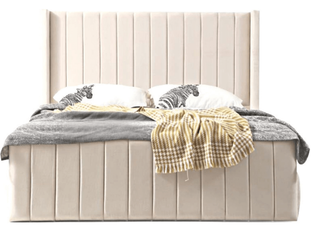 Structure & Matière : Cadre et Tête de lit en panneau agglomérer, capitonnage Mousse HR, Tissu Velours.