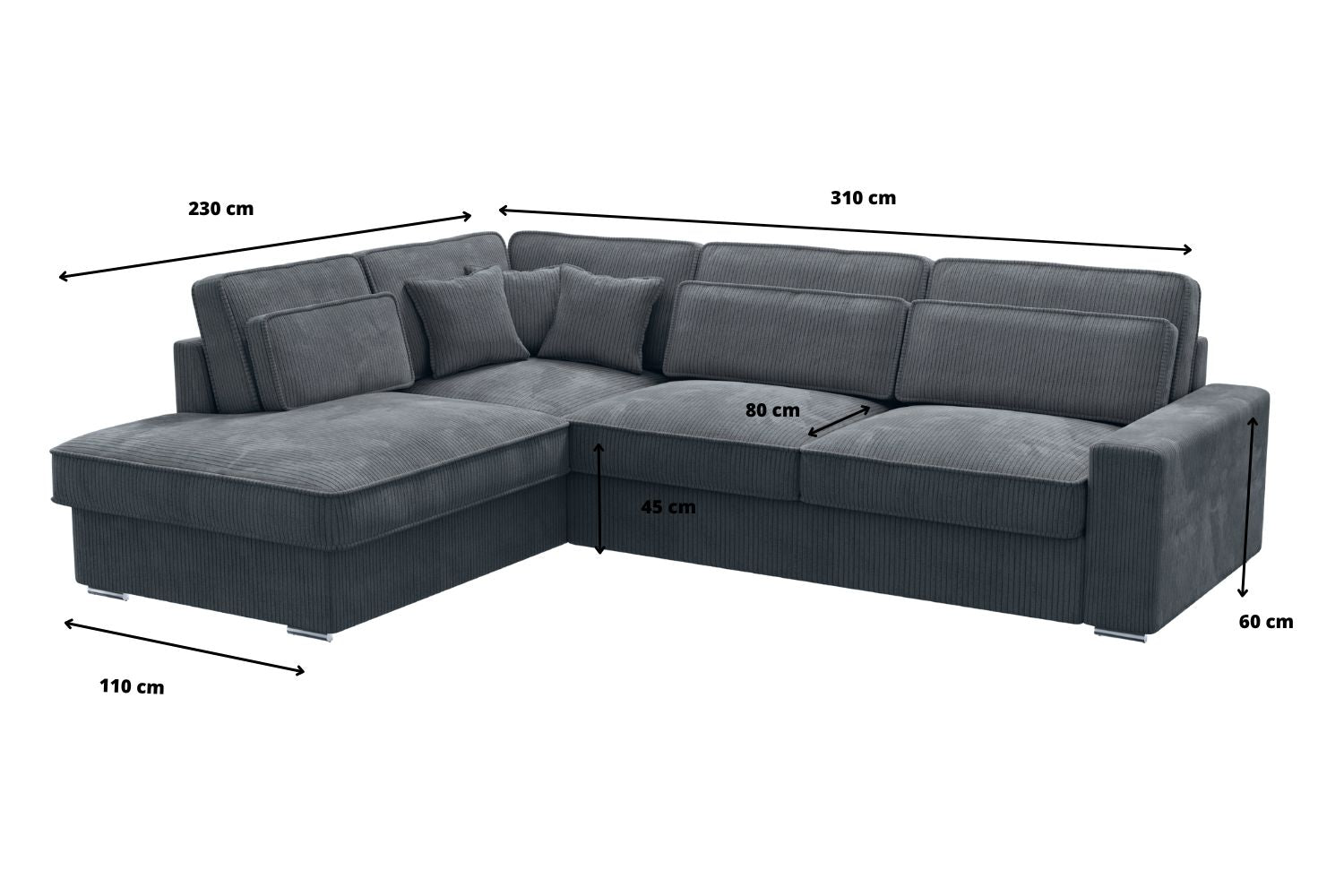 Canapé d'Angle LEXUS Côtelé Gris Anthracite
