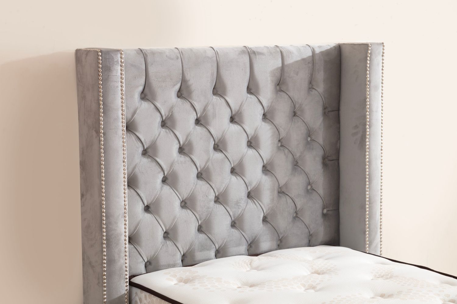 Lit Coffre Enfant CLOUTE Velours Gris