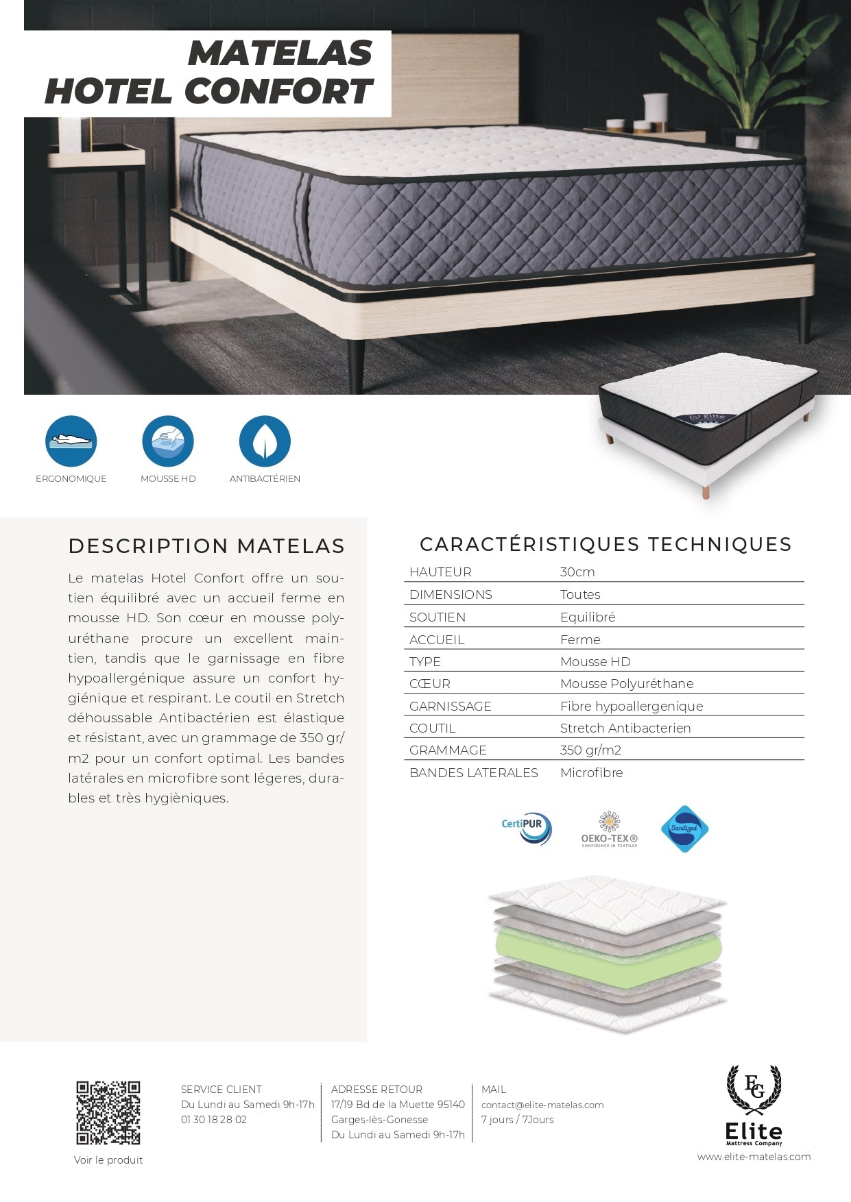 Hauteur Matelas : 30 cm